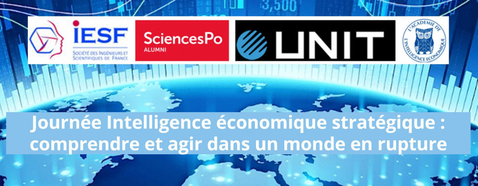Christophe Dubois-Damien, président du comité économie d'IESF Ingénieurs et scientifiques de France et président de l’entité 1980 de Sciences Po Paris Alumni et Philippe Clerc, président de l’Académie de l’Intelligence économique sont heureux de vous inviter à la :